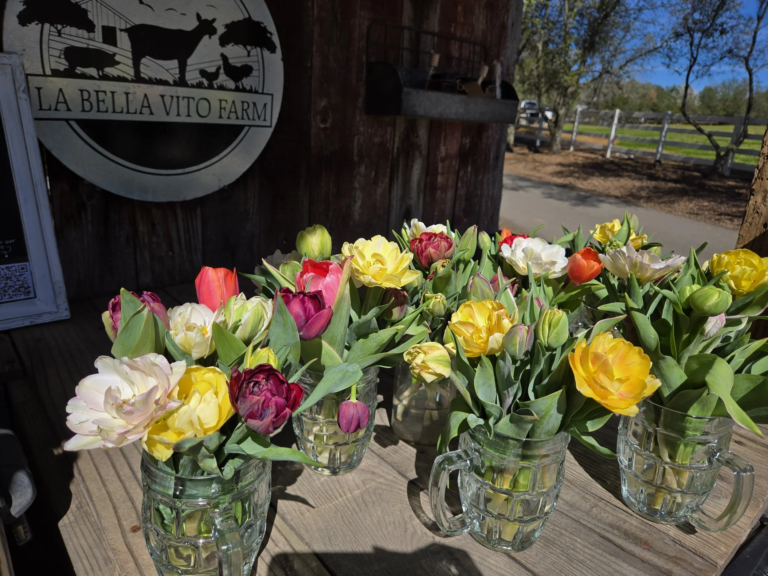 From early spring tulips to summer sunflowers and dahlias, our flowers are harvested fresh and arranged right here on the farm.