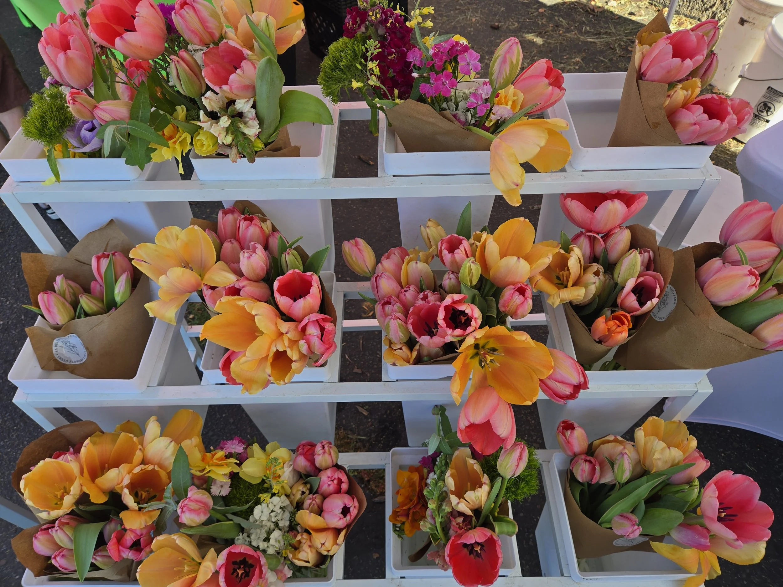 In early spring, we’re harvesting tulips by the armful.
