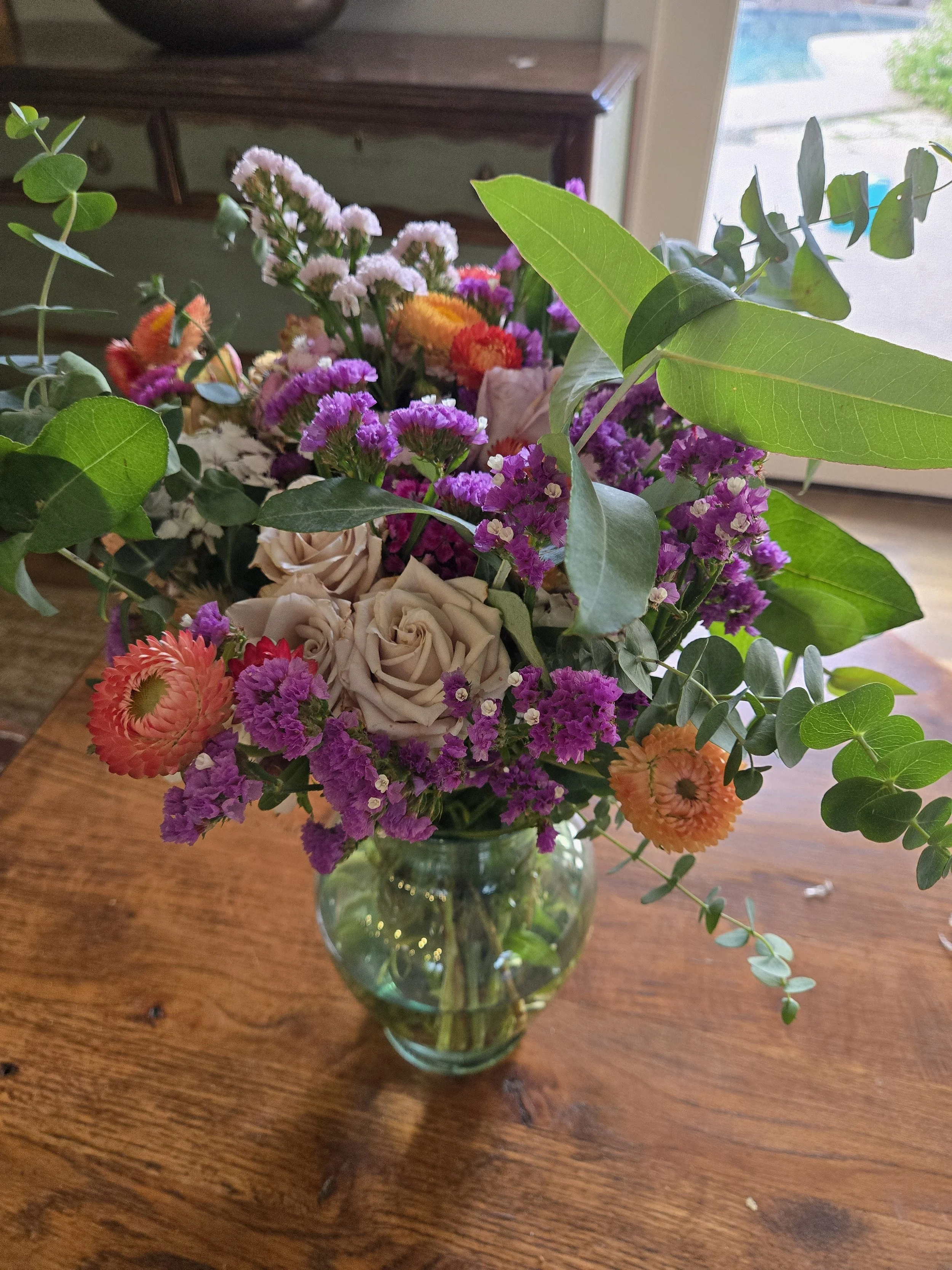 Each bouquet is made from flowers grown right here on our farm, reflecting what is naturally in bloom during the season. Every stem is cut at peak freshness, creating a mix of color, texture, and movement that changes with the time of year.